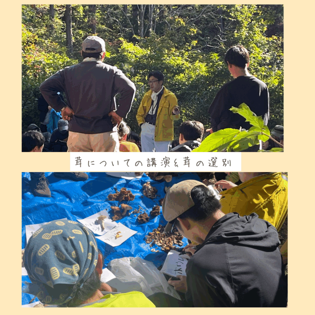 今年は、菌類の研究者・糟谷大河先生をお招きし、前日の夜・当日と「茸」についてのお話を聞きました。先生のお話は、分かりやすく、楽しくユーモアに溢れ、笑い声が森に響いていました。